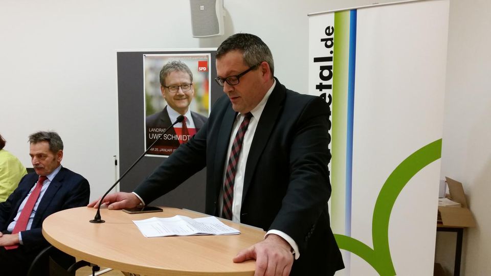 Landrat Uwe Schmidt überbrachte den Vertretern aus Vereinen und Verbänden und den Genossinnen und Genossen in Niestetal die besten Wünsche für das Jahr 2015. Den Appell der Jusos Niestetal zur Beteiligung junger Menschen am politischen Willensprozess in der SPD aufnehmend, wies er auf die enorme Bedeutung der Weiterentwicklung der Infrastruktur für attraktive Ausbildungs- und Arbeitsplätze im Landkreis Kassel hin. Wie in Niestetal zu beobachten, bringe dies die Ansiedelung junger Familien mit sich, die gern von den guten Kinderbetreuungsangeboten Gebrauch machten und die hervorragend aufgestellten Schulen des Landkreises nutzten. Der gemeinsam durch alle nordhessischen Landkreise gestartete Ausbau der digitalten Infrastruktur bedeute für den ländlichen Raum Teilhabe und steigere die Zuzugschancen für junge Menschen, die gerne in ländlichen Regionen leben möchten. Dies bedeute auch Entwicklungsmöglichkeiten für die bereits heute gut aufgestellten Betriebe im Nordteil des Landkreises. Beispielhalft für die Eingliederung vieler junger Kriegsflüchtlinge beschreibt Uwe Schmidt die mit den Innungsbetrieben der Handwerksammer Kassel gestartete Praktikumsinitiative, die Interessen und Neigungen der Jugendlichen auslote, um eine Einstellung in ein Ausbildungsverhältnis z. B. als Tischler, Metaller oder Installateur zu ermöglichen. Um Vorkenntnisse zu vermitteln, besuchten die Jugendlichen die Berufschule Wolfhagen, die Deutschkurse abhalte und auf die Ausbildung vorbereite. Wie in allen anderen Belangen, die er als Sozialdemokrat bei Entscheidungen abzuwägen habe, stünden - wie zuvor geschildert - die Bedürfnisse der Menschen im Mittelpunkt. Uwe Schmidt ruft die Anwesenden dazu auf, auch bei der bevorstehenden Landratswahl Mitmenschen zum Wahlgang zu motivieren und so die Wahlbeteiligung zu steigern.