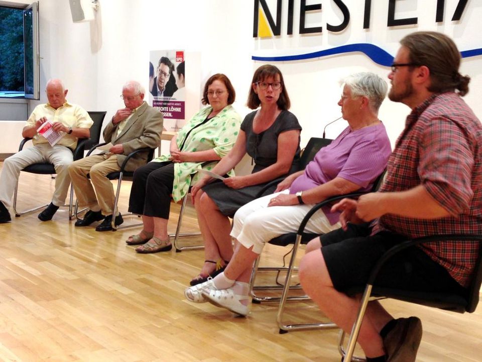 Diskussion: Karl-Ernst Braun (v.l.), Joachim Heimann, Silvia Nolte, Martina Werner, Margot Mathusek, Marcel Brückmann