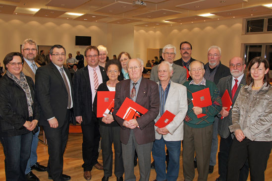 Für 40 Jahre SPD Mitgliedschaft wurden geehrt: Wilfried Bischoff, Kurt Braun, Falk Gottschalck, Wolfgang Gundlach, Kurt Labuhn, Otto Matthies, Werner Nicolaus, Silvia Nolte, Harald Strauss und Günter Völker